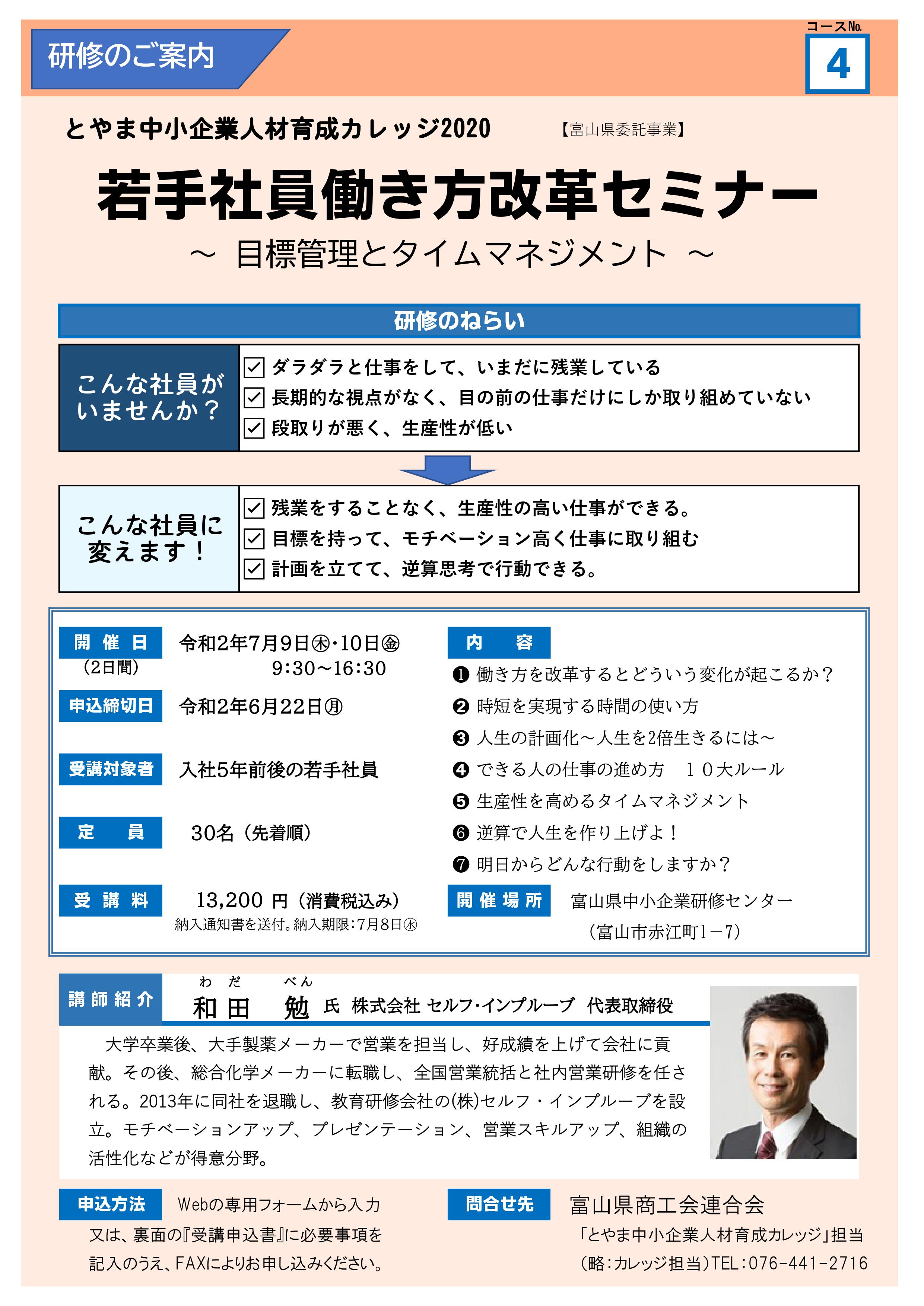 とやま中小企業人材育成カレッジ2020 4⃣「若手社員働き方改革セミナー」