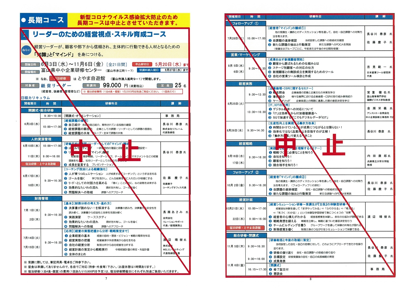 【中止】とやま中小企業人材育成カレッジ2020 長期 1⃣「リーダーのための経営視点・スキル育成コース」
