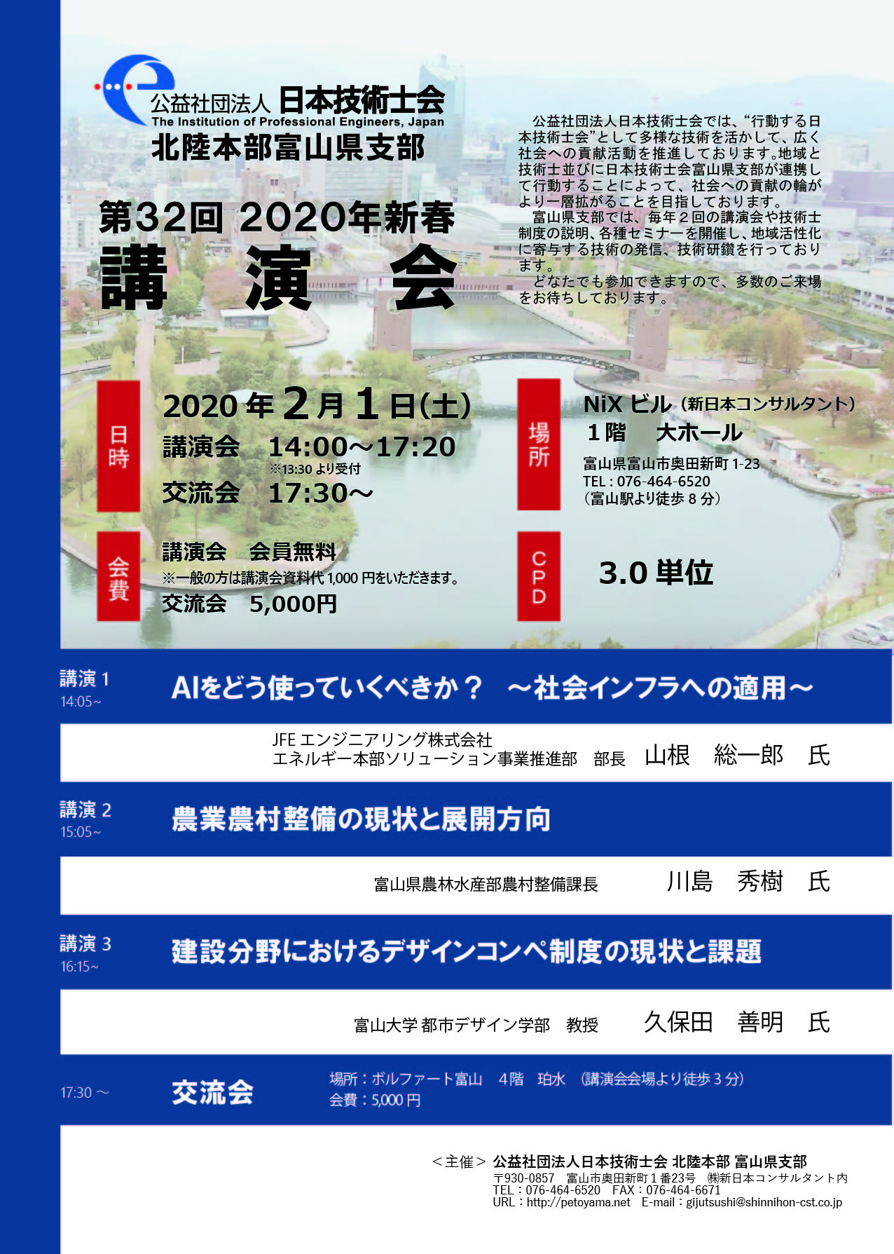 広く社会への貢献活動を推進しております。地域と技術士並びに日本技術士会富山県