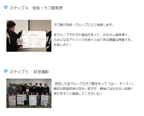 アンケートの分析からラフ案のつくり方まで、実践的に学べるのが大きな特徴。