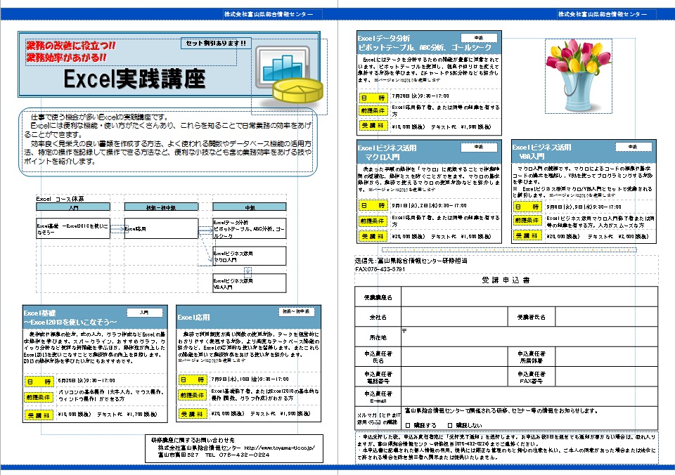 ・Excelの基本機能(表作成、関数、データベース、グラフ)が理解できる