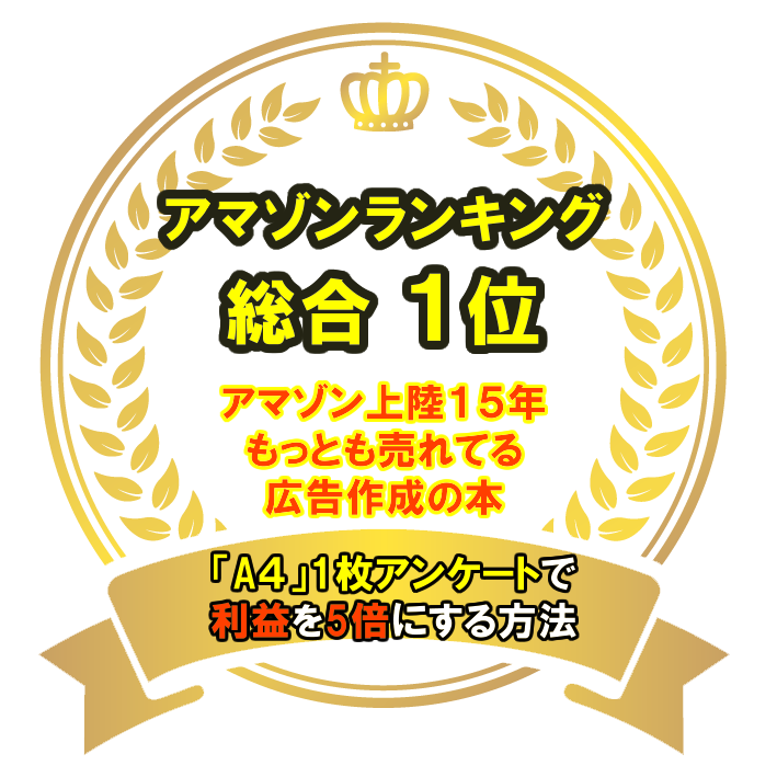 販促コンサルタント 岡本達彦先生 著書 『「A4」1枚アンケートで利益を5倍にする方法』(アマゾン上陸15年「最も売れたビジネス書ベスト50冊」)(アマゾンランキング総合1位を獲得)など広告作成の本として最も売れているベストセラー(現在14刷)の中で紹介している内容とこの方法を活用した成功事例も交えてお伝えします。