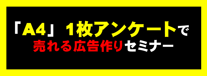 今回のセミナーは、『「A4」1枚アンケートで利益を5倍にする方法』を学び認定を受けた広告作成アドバイザーが講師をおこないます。