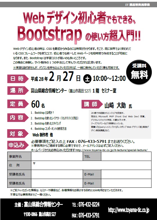 Web制作セミナー「Webデザイン初心者でもできる、Bootstrapの使い方超入門!! 」