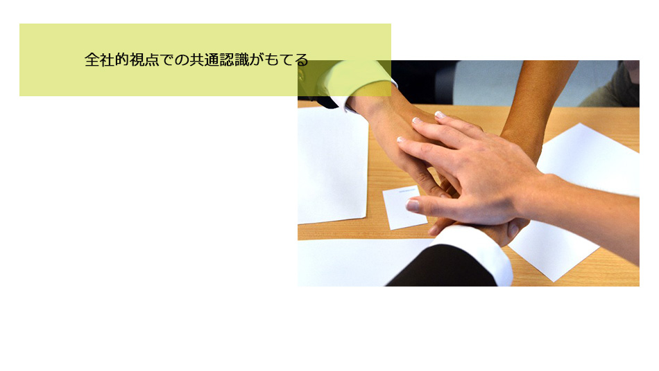 結果、全社的視点で方向性を認識できる為、会社のボトムアップにも繋がっていく
