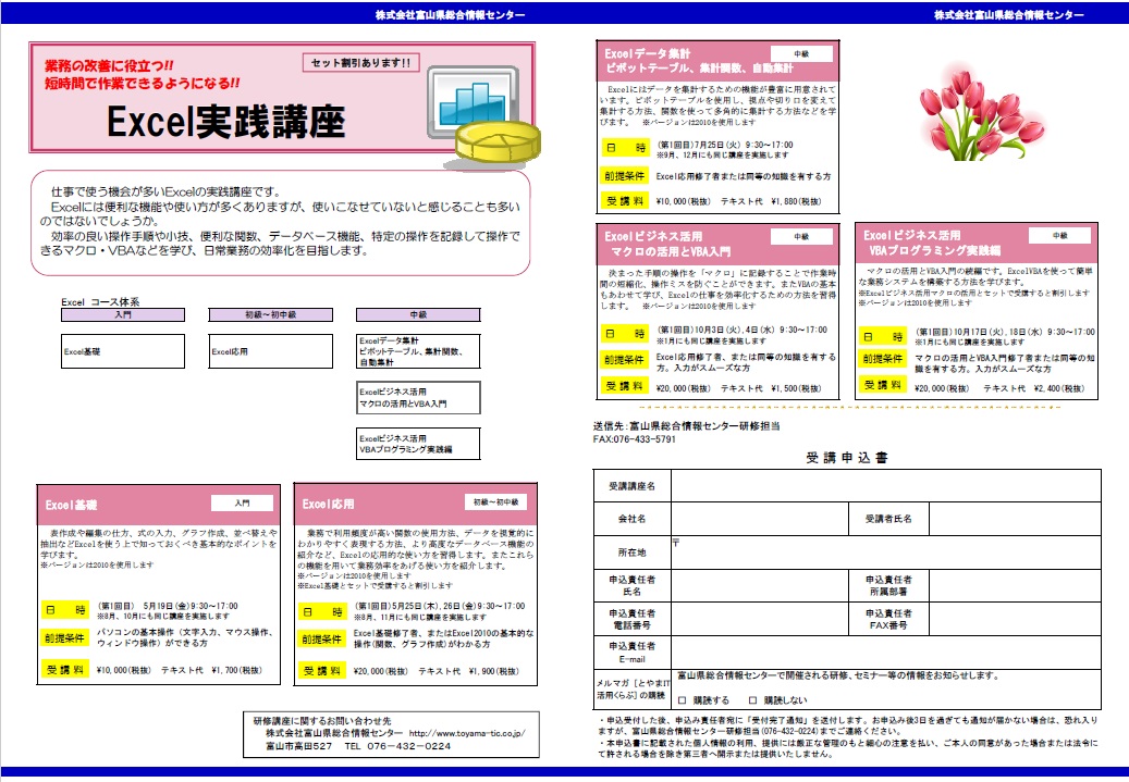 ・Excelの基本機能(表作成、関数、データベース、グラフ)が理解できる