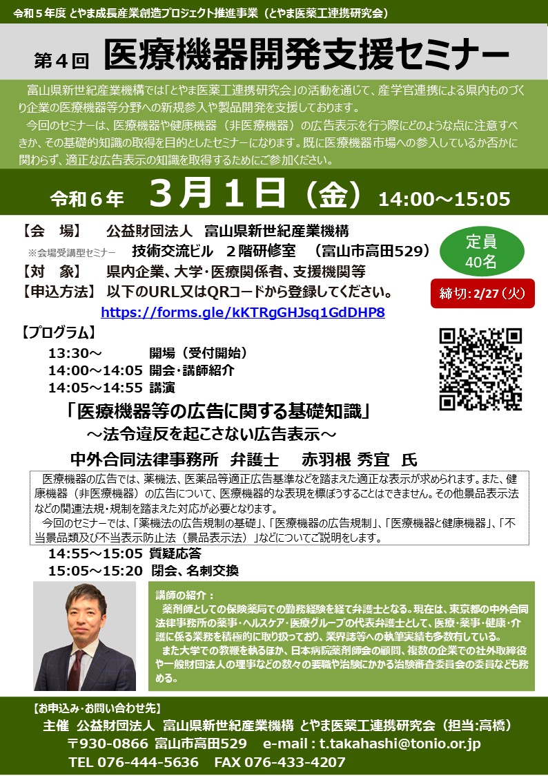 とやま医薬工連携研究会 第4回医療機器開発支援セミナー