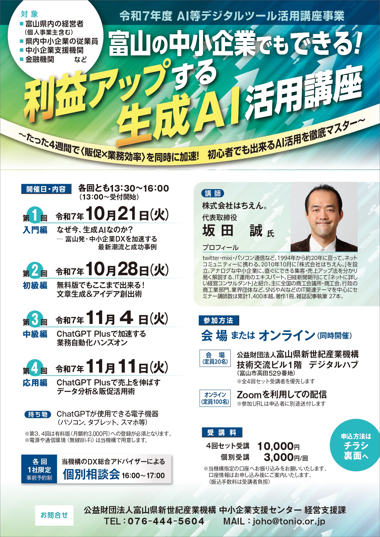 富山県内の経営者(個人事業主含む)、県内中小企業の従業員、 中小企業支援機関、金融機関など