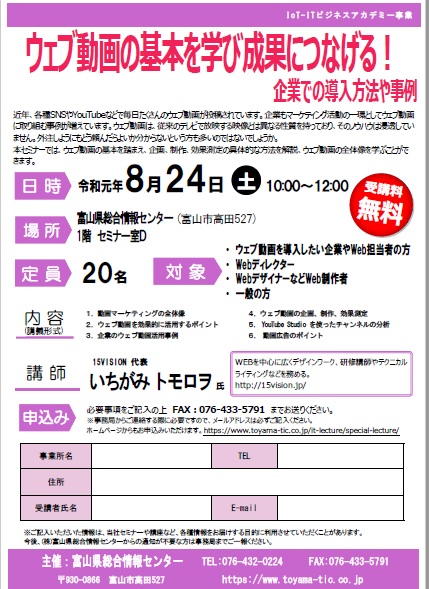 本セミナーでは、ウェブ動画の基本を踏まえ、企画、制作、効果測定の具体的な方法を解説、ウェブ動画の全体像を学ぶことができます。