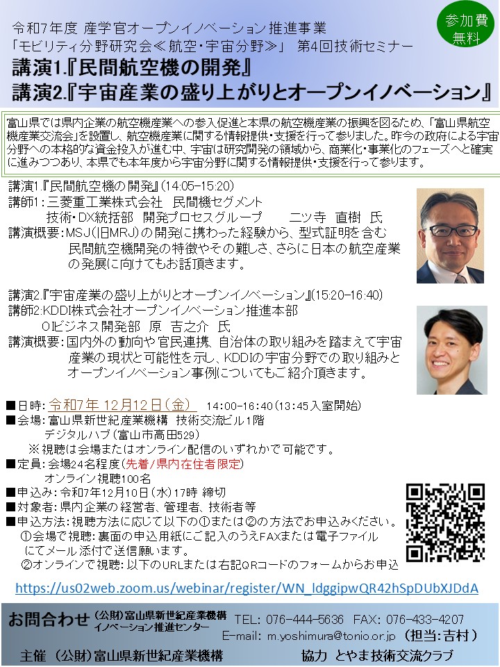 「モビリティ分野研究会≪航空・宇宙分野≫」第4回技術セミナー