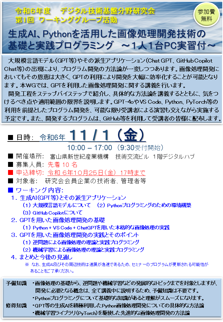 会場:(公財)富山県新世紀産業機構 技術交流ビル 1階デジタルハブ