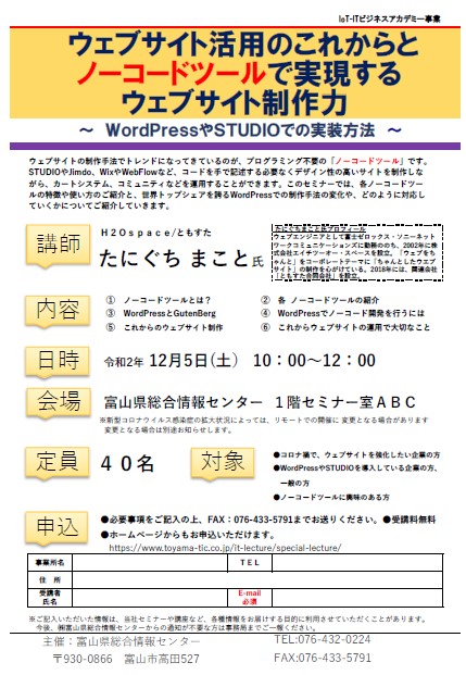 ウェブサイト活用のこれからとノーコードツールで実現するウェブサイト制作力〜WordPressやSTUDIOでの実装方法〜