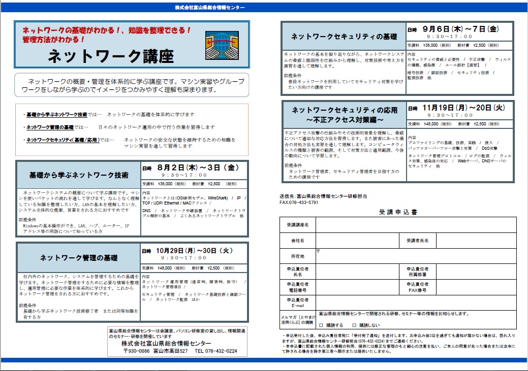基礎からセキュリティまで4講座、ネットワーク講座開催中です。